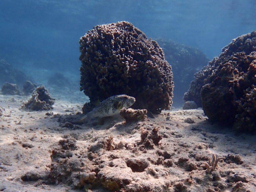 昨日の海 2020年3月18日 | コメントはまだありません 午前の海 ツアー中から晴れてきた白保海岸 気温 21.7℃ 湿度 55% 10:00 水温 21.5〜22.5℃ 南東の風 パラオハマサンゴ オコゼ?の幼魚 サザナミフグ 穏やかな風 安定した海況時にしか行けないポイントへ セジロクマノミ ホワイトチップ 久しぶりにホワイトチップシャークに会えたり 名前がわからないウミウシに出会ったり シマハギの群れ ヒメマツミドリイシ 今日も透明度良好の海 魚もサンゴもイキイキしていました♪ ニジハギ リピートでのご参加ありがとうございました! うめはお留守番犬でした 未分類