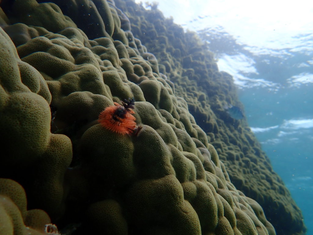 8/27の海 2020年8月28日 | コメントはまだありません 午前の海 今日も風強めの白保海岸 気温 30.6℃ 湿度 82% 10:00 気温 29.2℃ 湿度 88% 14:00 午後の海 午前は曇り空 午後は土砂降りの雨がおさまってから ツアー開始 イソギンチャクモエビ ハマクマノミ イソギンチャクが白くなって元気ない… 1日波高めでしたが 海の中は とても静かな世界が 広がっていました イバラカンザシ カクレクマノミ ユビエダハマサンゴ 月末に大きな台風が発生しそうです いつまでツアー行えるかな… 雨が降りそうだったので、うめは1日お休みしました 未分類