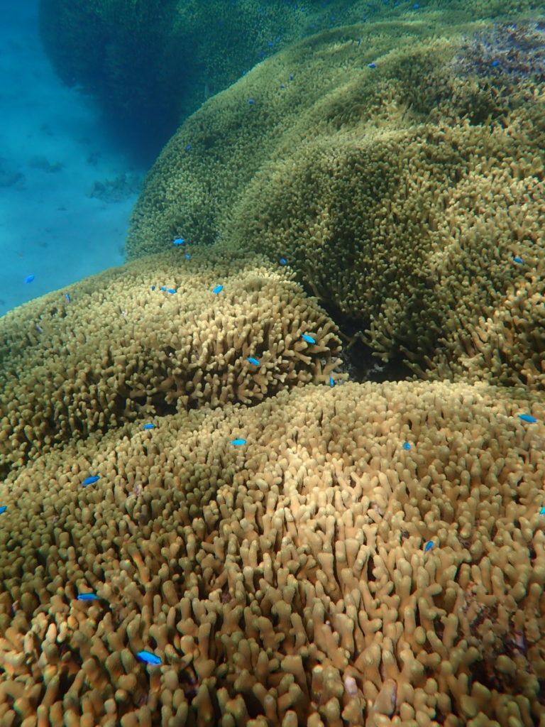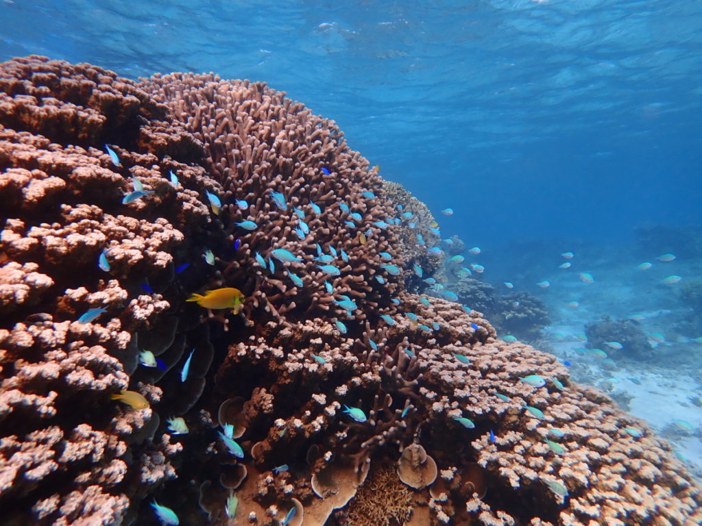 11/18の海 2020年11月18日 | コメントはまだありません 午前の海 11/18の海 気温 27.1℃ 湿度 79% 水温 26℃ 10:00 パラオハマサンゴとデバスズメダイ ヨコシマタマガシラの群れ 秋晴れ 爽やかな天候が続いています アオサンゴ ユビエタハマサンゴ 東風にて寒さなく 快適シュノーケリング アミチョウチョウアオ幼魚 ミスジチョウチョウウオ 3cmくらいのちっちゃなミナミハコフグ幼魚 ヤリカタギ幼魚 ちっちゃな幼魚との 出会いいっぱいの海でした 平和の願いを背負ってお留守番のうめ 未分類