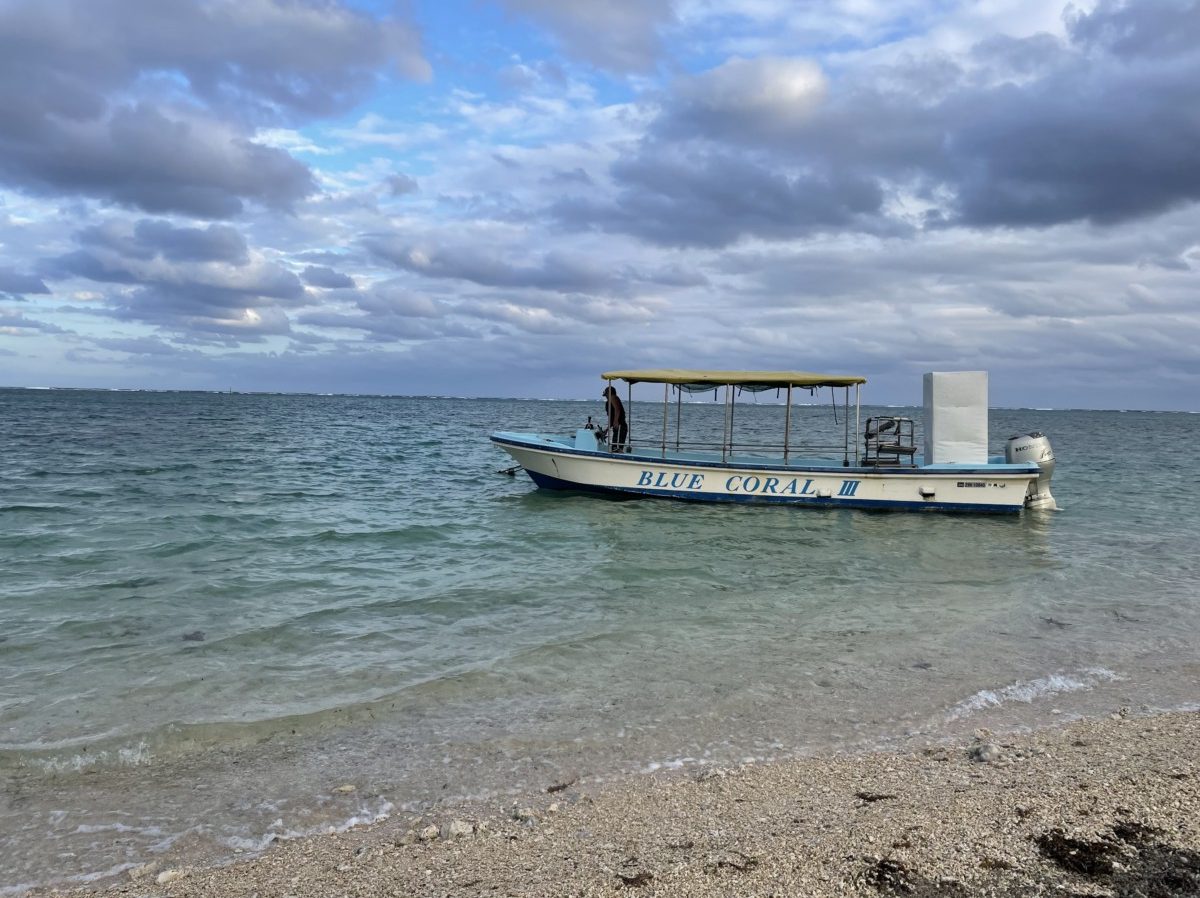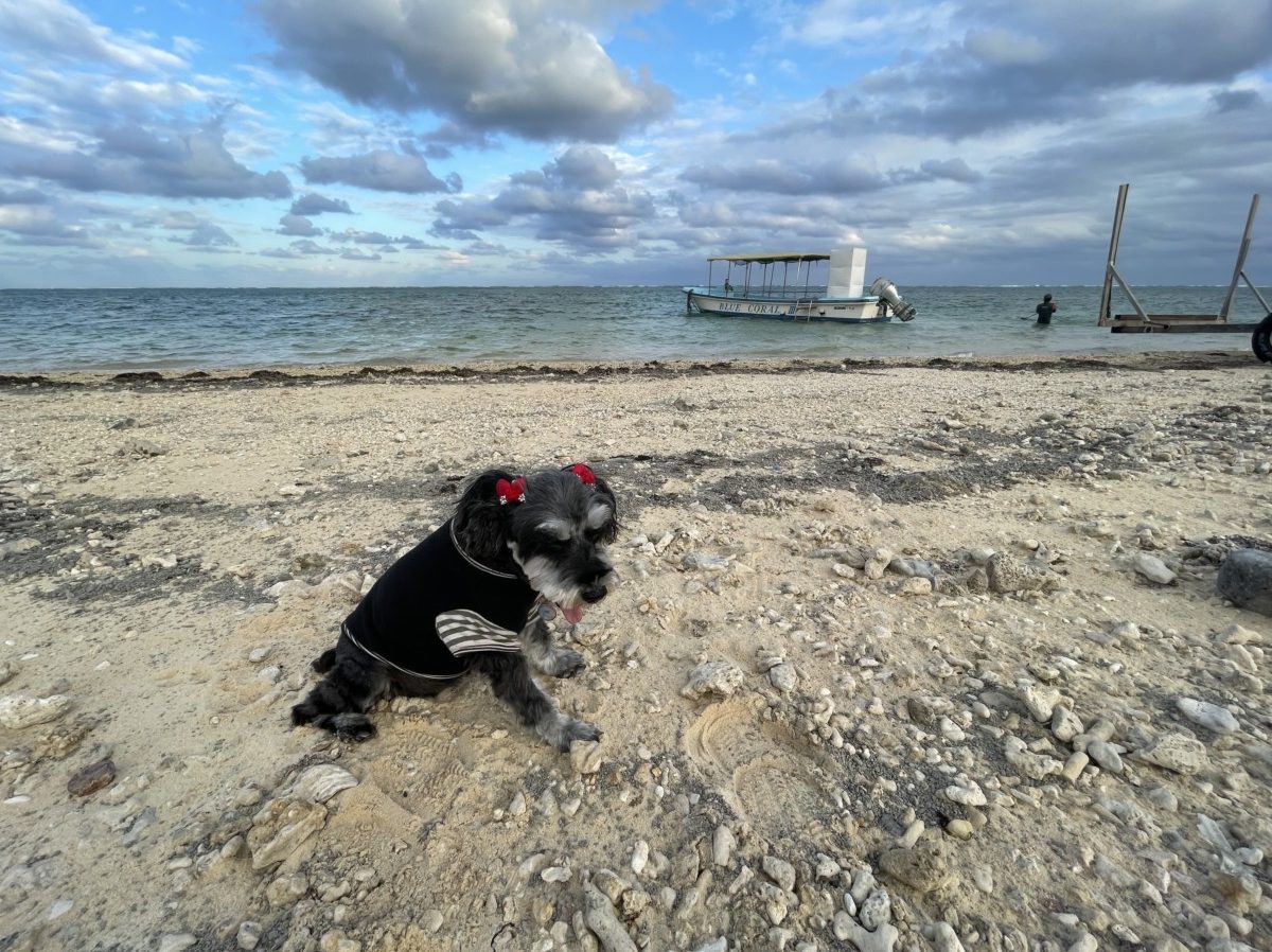 ツアー再開 2021年12月14日 | コメントはまだありません お久しぶです今日の海 まだ軽石は浜に漂着していますが軽石対策をして船を海に戻しました 気温 23.0℃ 湿度 62% 17:00 明日からツアー再開ですが…発生している台風22号の影響が週末出そうです うめは今日トリミングに行ったのでリボン姿です 未分類