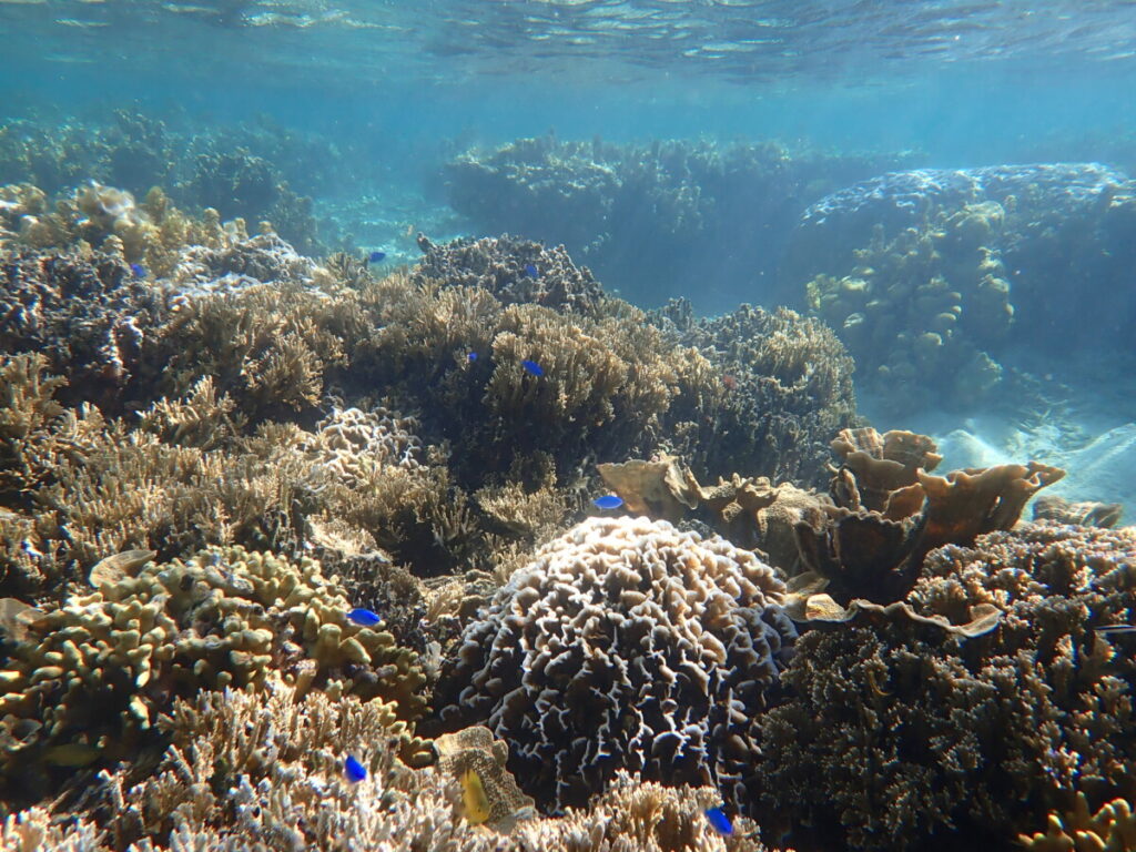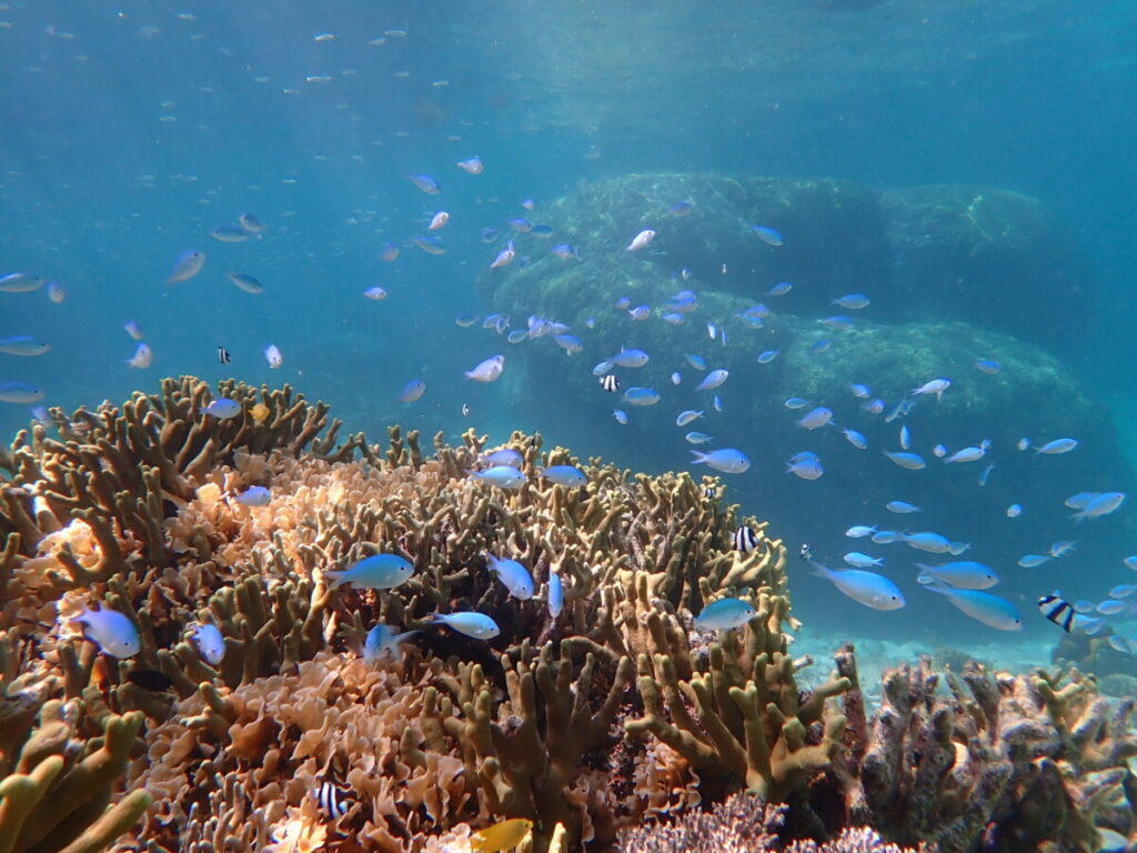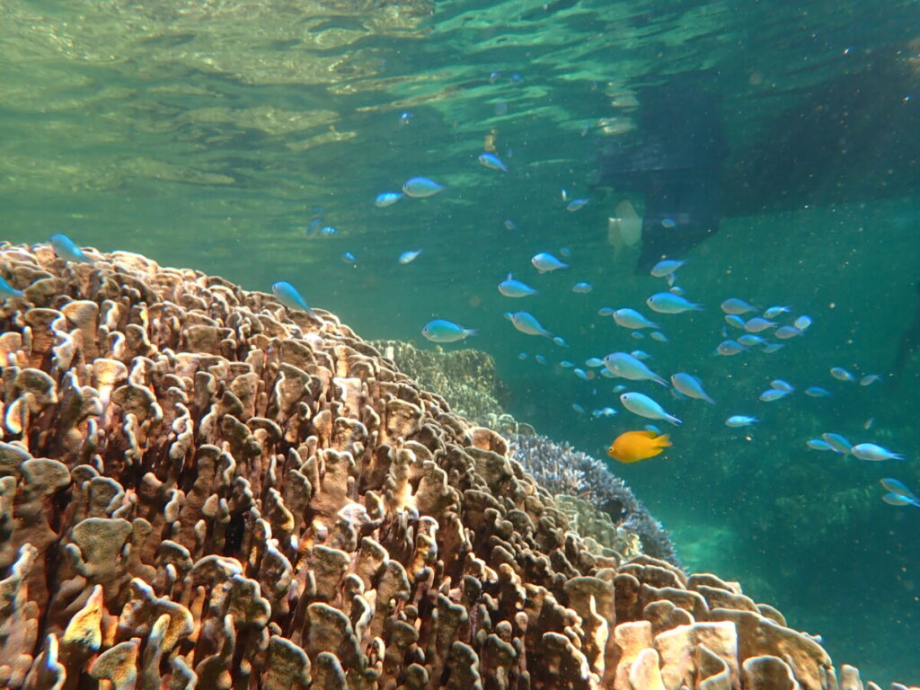 午後のアオサンゴポイントでは、水温が34度を超える場所もありました。