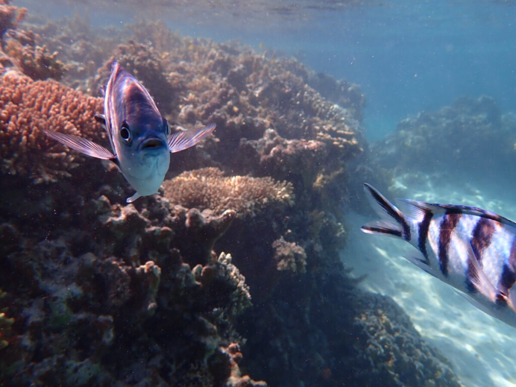 10/8の海 2023年10月9日 | コメントはまだありません 10:00 気温 29.7℃ 湿度 72% 水温 29.2℃15:00 気温 30.3℃ 湿度 70% 水温 32.0℃ ①午前の海②午後の海晴れ風もおさまりシュノーケリング日和 アカヒメジ ニオウミドリイシ セジロクマノミ幼魚2匹一緒にやっと写せました後ろの成魚と比べるとまだまだちっちゃーい クマノミ団地のそばでロクセンスズメダイに話しかけられた様な1枚 デバスズメダイ アオサンゴの個室に入ってるハマクマノミ ツアーご参加ありがとうございました! ツアーご参加ありがとうございました! ツアーご参加ありがとうございました! 看板犬うめ今日も皆さんにいっぱいナデナデしていただきました 未分類