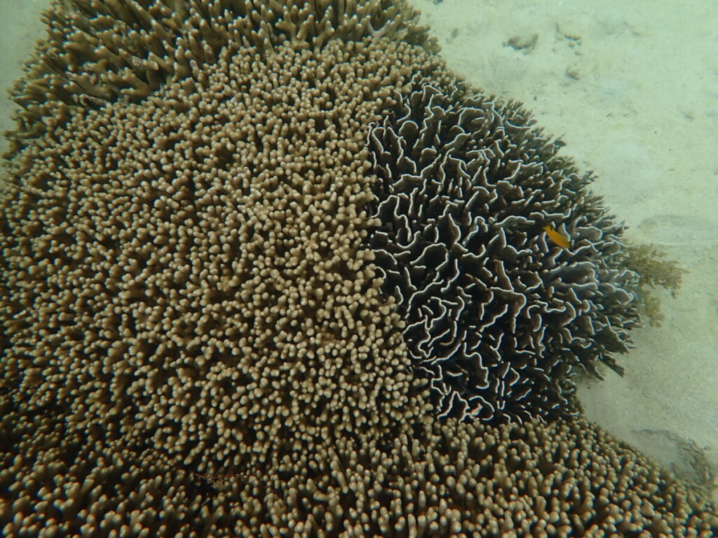 10/10の海 2023年10月11日 | コメントはまだありません 午後の海 15:00 気温 26.8℃ 湿度 86% 水温 29.2℃ カクレクマノミ覗いてました 本日より午前か午後のどちらか潮位が高い時間帯でのツアーとなります ユビエダハマサンゴとアオサンゴ ハマサンゴとアオサンゴ ユビエダハマサンゴ 本日は午後のみツアーへ北東の風ビュービューの曇り空でしたがツアー中は雨も降らず水温まだ高めでしたが濁りもなく初シュノーケリングのお客様にも楽しんでいただけました ツアーご参加ありがとうございました! ツアーご参加ありがとうございました! ツアーご参加ありがとうございました! 明日は今日よりも風が強くなる予報にてツアーお休みします 看板犬うめ 未分類