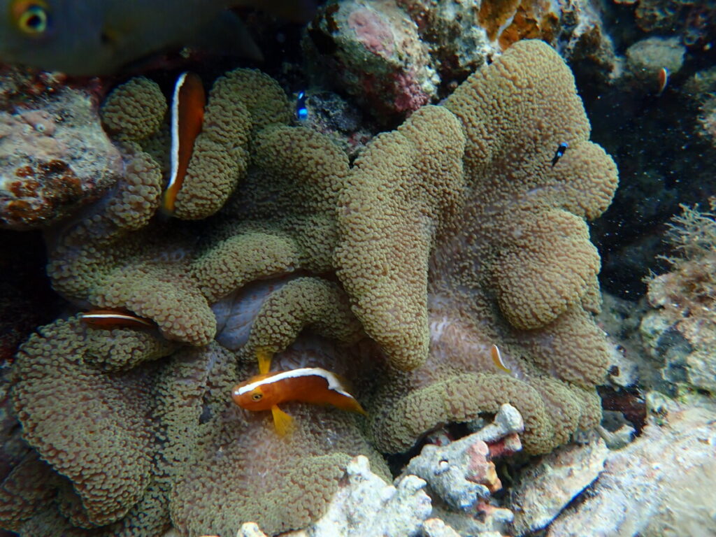 10/27の海 2023年10月27日 | コメントはまだありません 午前の海 10:00 気温 26.2℃ 湿度 72% 水温 27.2℃ クマノミ団地のハマクマノミ 本日より午前のツアーです曇り空でもあったため海は少しヒンヤリでも透明度はまずまず良好 オビテンスモドキ幼魚近くに寄れなかったためピンボケですが…とても美しい模様成魚になるとかなり模様が変わります セジロクマノミファミリー5匹揃っての1枚幼魚が少し大きくなりました トゲチョウチョウウオ ギンガハゼ砂地から顔を出して周りをキョロキョロ ユビエダハマサンゴ 看板犬うめ午後からトリミングへ行ってくるよ 未分類