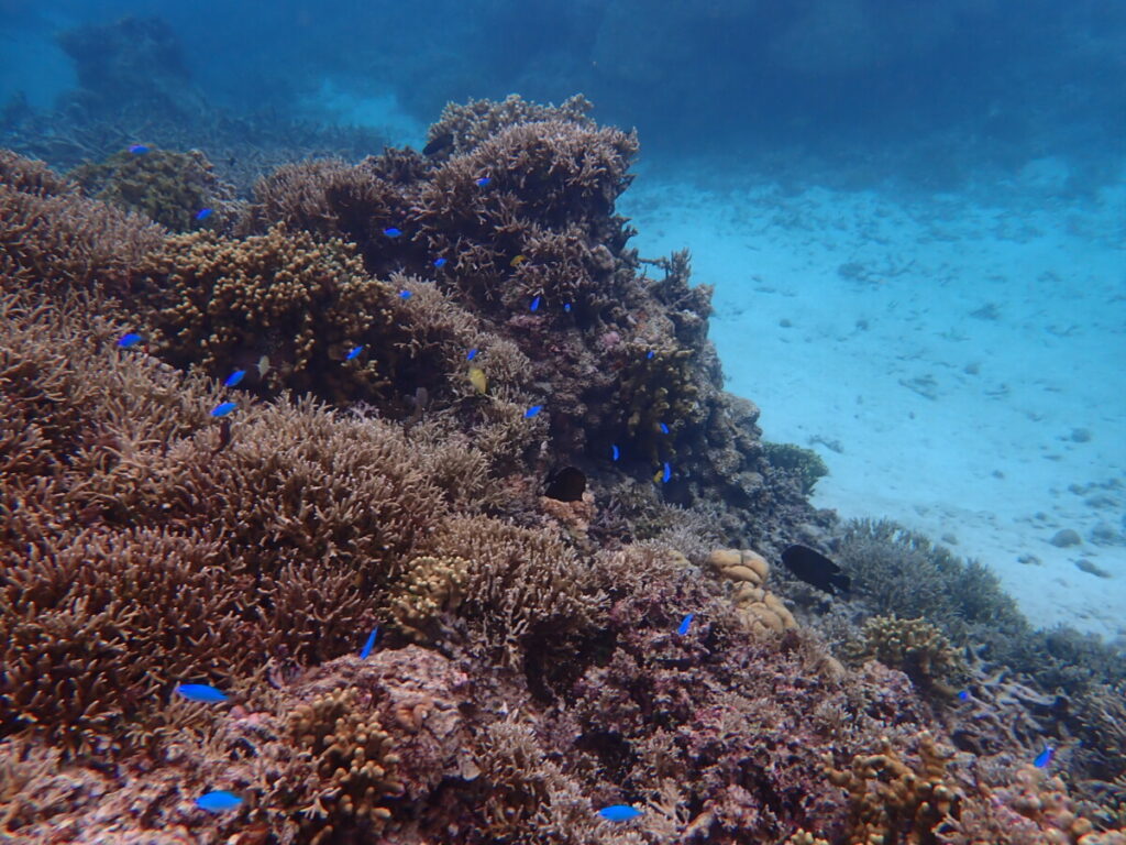 12/29の海 2023年12月29日 | コメントはまだありません 午前の海 10:00 気温 22.0℃ 湿度 92% 水温 24.8℃ ハマサンゴ ルリスズメダイ 数日前までの風予報が大きく変わり穏やかな海況空は曇ってましたが海の透明度は良好 ユビエダハマサンゴとデバスズメダイ ツアーご参加ありがとうございました! シュノーケル使えるようになったね♪ ハマクマノミ発見 リピーターご家族とツアーへ大きくなった子供たちシュノーケルも使えるようになったね成長した姿にご両親と一緒に感動 カクレクマノミ お兄ちゃんはスイスイ泳ぎました〜 うめは午後から今年最後のトリミングへ行ってきまーす! 未分類