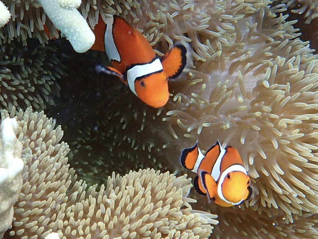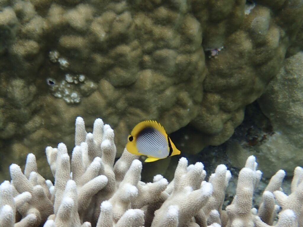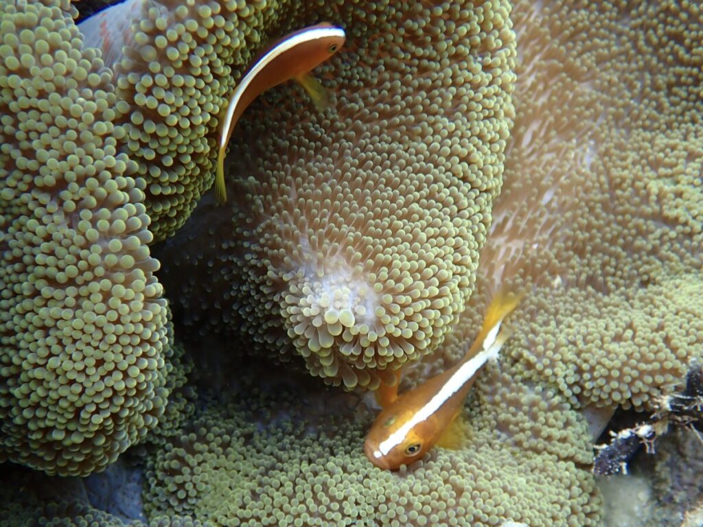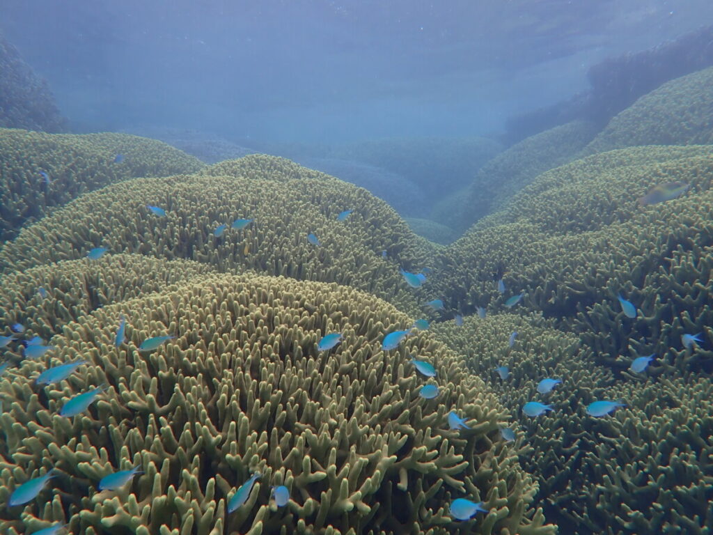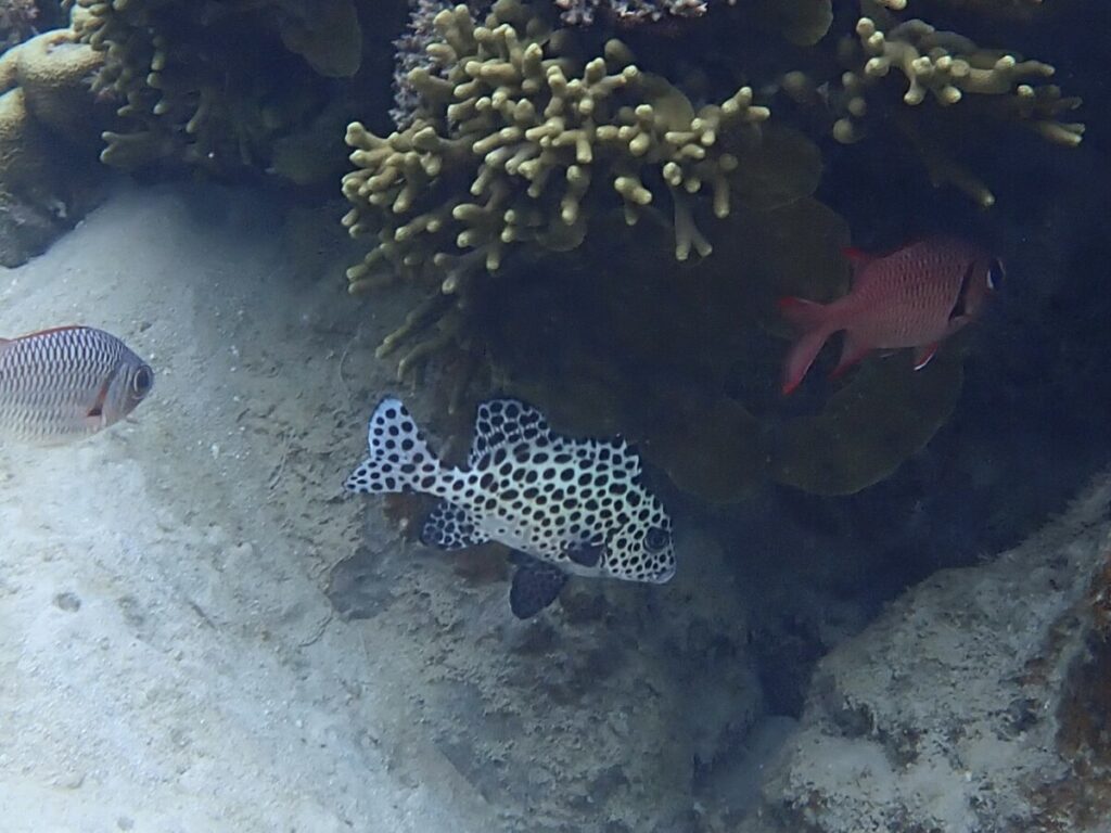 5/20の海 2024年5月20日 | コメントはまだありません 午前の海 10:00 気温27度 温度84% 水温26.5度 スタッフのゆかです😊 今日は朝から強い雨。 ツアー中も雨が降ったりやんだりのお天気☂️ アオサンゴのポイントは 少し濁りがありましたがキレイな海でした✨ アケボノチョウチョウウオ幼魚 ハマサンゴ チョウチョウコショウダイ若魚 いつも同じところにいる子ですが、大人とほとんど同じ柄になってきました。 セジロクマノミ ハートサンゴ アオサンゴ ツアーご参加ありがとうございます♪ カクレクマノミ 写真には撮れなかったのですが、数日前から小さな赤ちゃんが仲間入りしています。 アオサンゴとユビエダハマサンゴ ユビエダハマサンゴとデバスズメダイ 今日のウメちゃん 天気が不安定な日が続いています😳 そろそろ梅雨入りしそうです☔️ 未分類