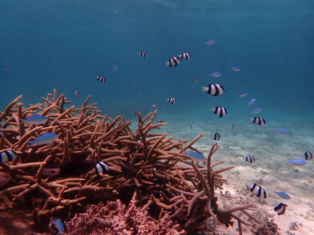 6/16の海 2024年6月17日 | コメントはまだありません 午前の海 午後の海 10:00 気温 30.7℃ 湿度 87% 水温 29.5℃15:00 気温 31.6℃ 湿度 81% 水温 30.0℃ アオサンゴとウスコモンサンゴ 昨日は風強く…晴れていたのに午前も午後もツアー中止今日も風強めでしたが問題なくツアー催行 エダサンゴ ニジハギ 水温高くラッシュガードで泳がれるお客様が増えてきました ツアーご参加ありがとうございました! ミスジリュウキュウスズメダイ 小潮の海エダサンゴやウサコモンサンゴが元気に育っているポイントへ久しぶりに行けました ツアーご参加ありがとうございました! サザナミヤッコ今日も出会えた青い縁取りがとても美しい ツアーご参加ありがとうございました! ウミウシの卵塊サンゴの下側に産みつけてありました 看板犬うめ 未分類