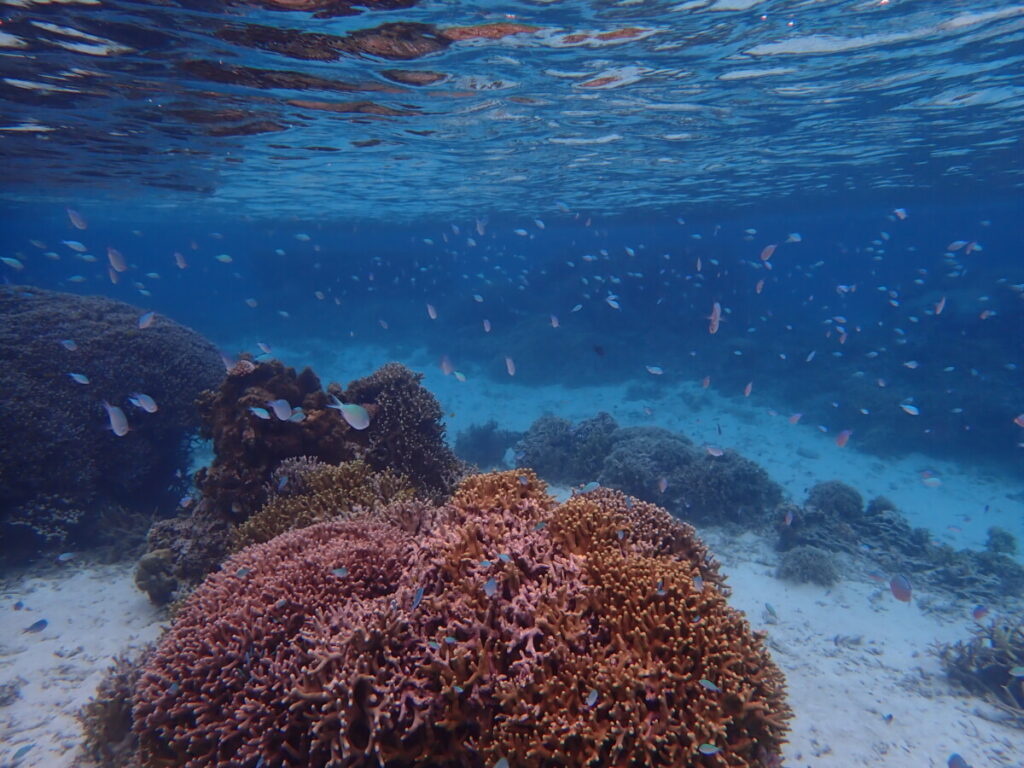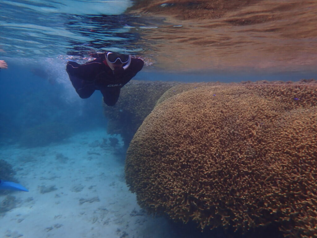 2/26の海 2025年2月26日 | コメントはまだありません 午前の海 10:00 気温 21.0℃ 湿度 58% 水温 22.2℃ ツアーご参加ありがとうございました! デバスズメダイ 晴れたり曇ったりの空模様でも穏やかな南東の風 ハマクマノミ ツアーご参加ありがとうございました! 午前の海は少しヒンヤリしていましたがほとんどが初シュノーケリングのお客様も楽しそうに泳いでいただけました 元気に色に戻ったイソギンチャクから顔を出してたハマクマノミ幼魚 ツアーご参加ありがとうございました! スクスク育っているミドリイシサンゴ ユビエダハマサンゴ 卒業旅行でご参加いただいた皆様ご卒業おめでとうございます㊗️社会人生活も楽しい事いっぱいでありますように! うめもいっぱい可愛がっていただきました 未分類
