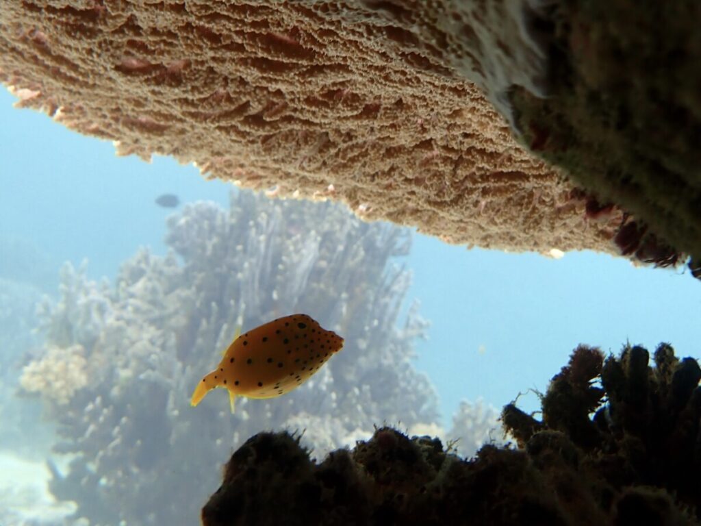 ミナミハコフグ幼魚を観察中
