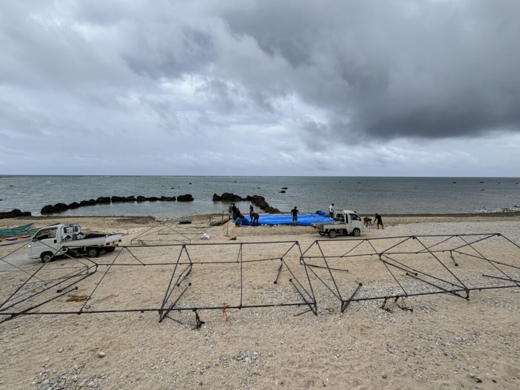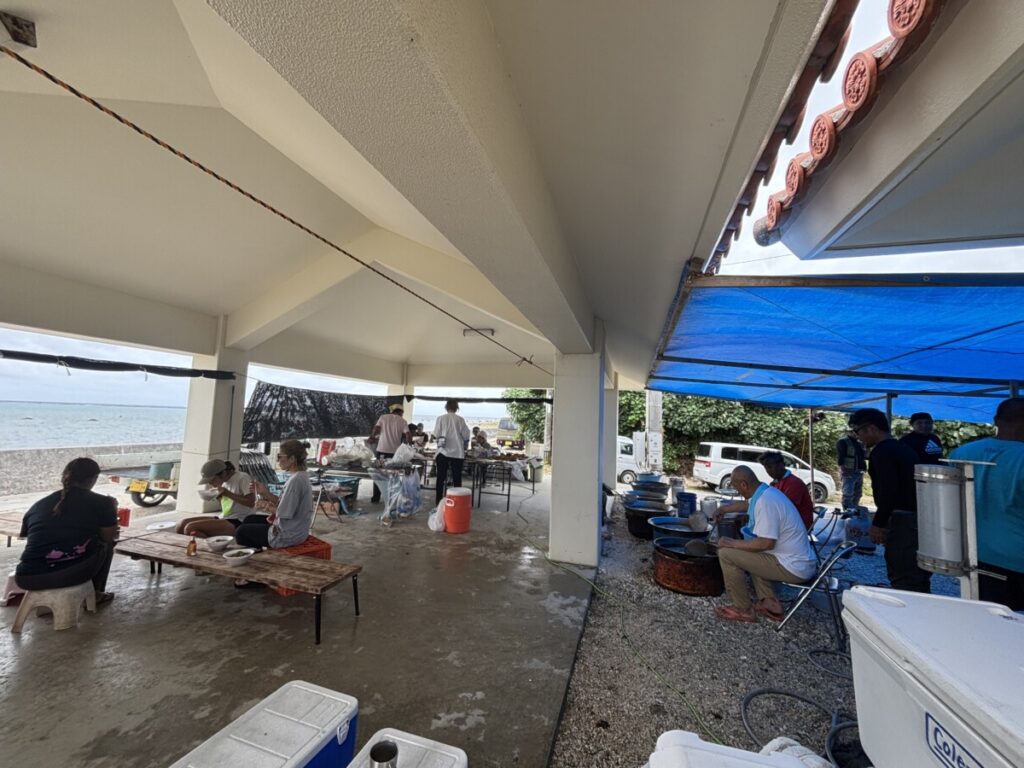 白保海神祭準備 2025年5月28日 | コメントはまだありません 白保海神祭まであと2日梅雨らしい天候の1日今日は朝早くから当日のお祝儀返し『アゲブラ(魚の唐揚げ)』作り 毎年恒例のアゲブラに使用する魚はハーリー組合員が獲ってくれた海からの贈り物です アゲブラもですが舞台作りから会場作り当日の演舞に舟漕ぎレースみんなで作り上げるアットホームな雰囲気のとてもとてもステキな白保海神祭平日ではありますがみなさんぜひ会場に足をお運びください 旧暦5月4日風がおさまり子供達が舟漕ぎできますように 未分類