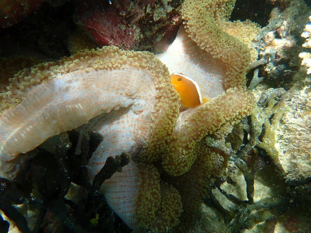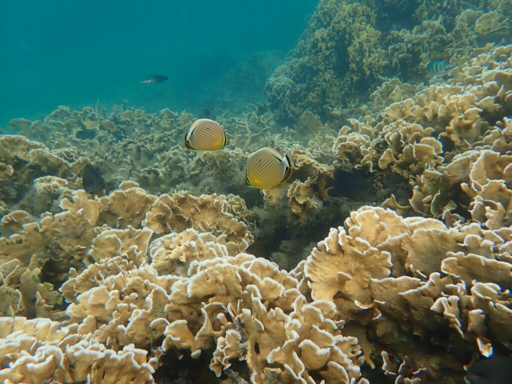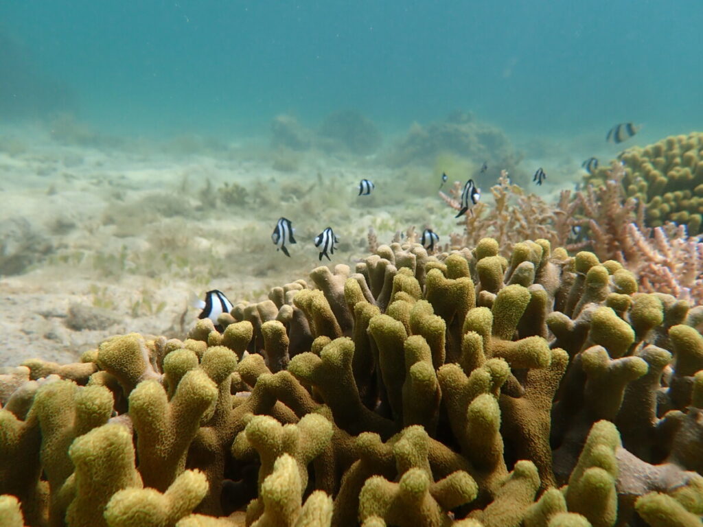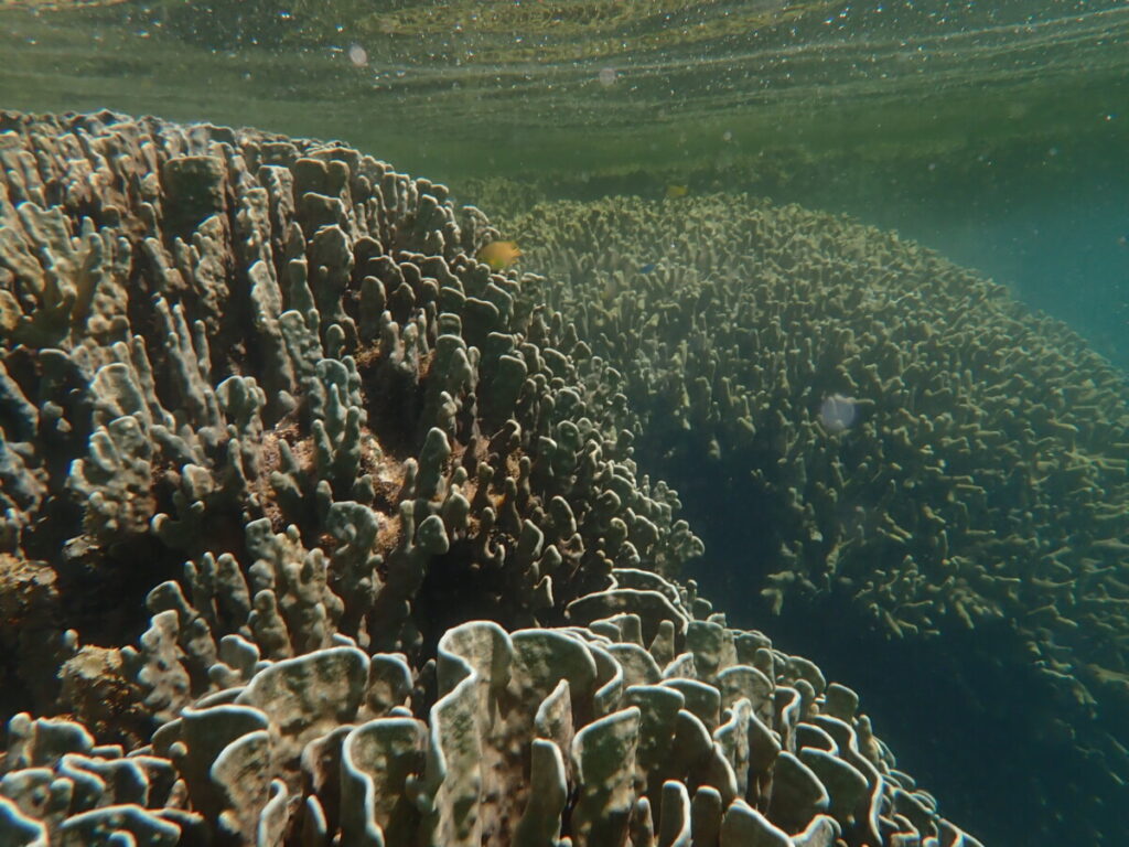 黄緑色のユビエダハマサンゴと同じ色になっていました。
