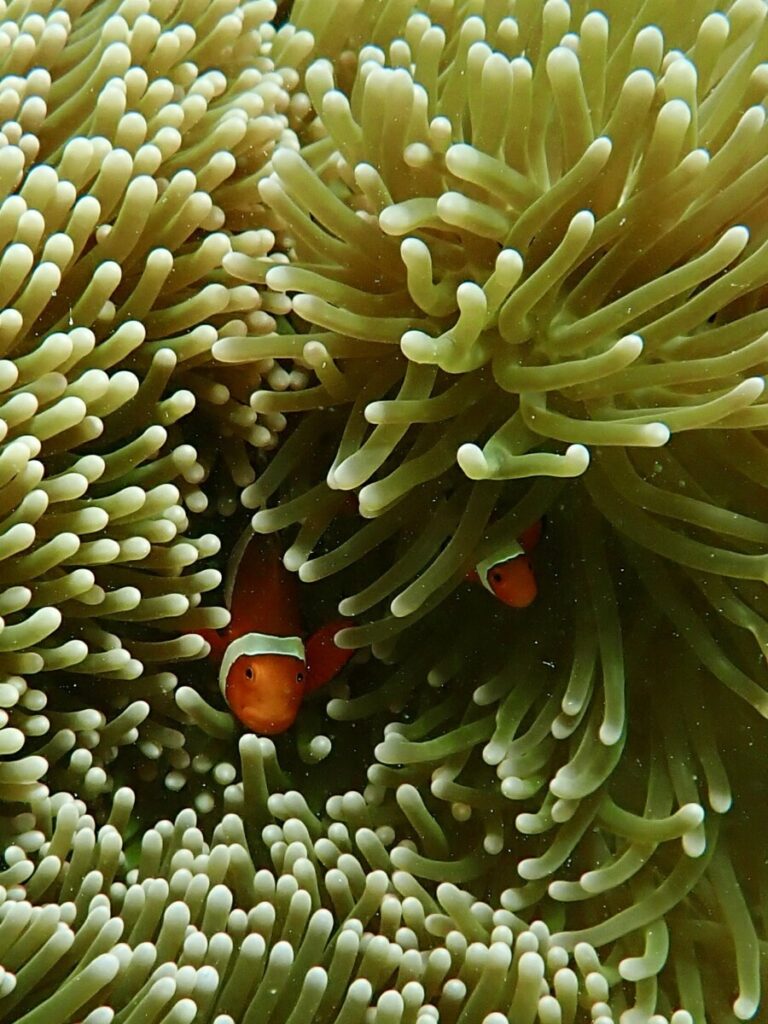 ツアー中、通常はハマサンゴポイントで、セジロクマノミをご紹介していますが、リーフエッジ寄りのアオサンゴポイントにもセジロクマノミがいます。