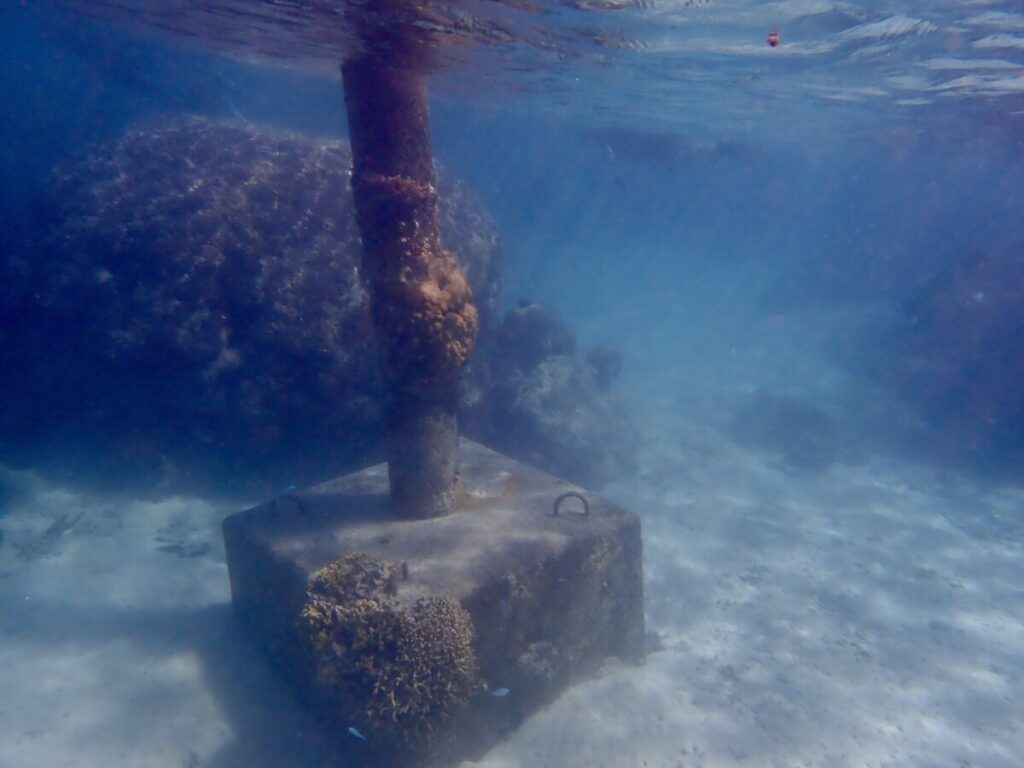 ポールの台座のサンゴが大きく成長していました