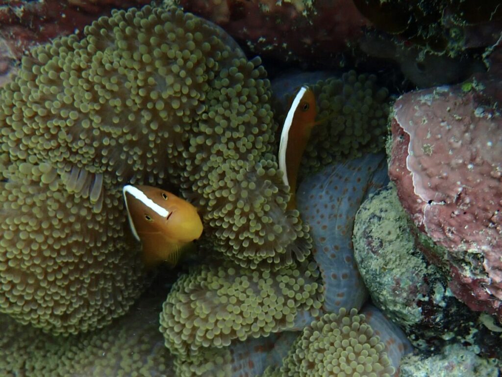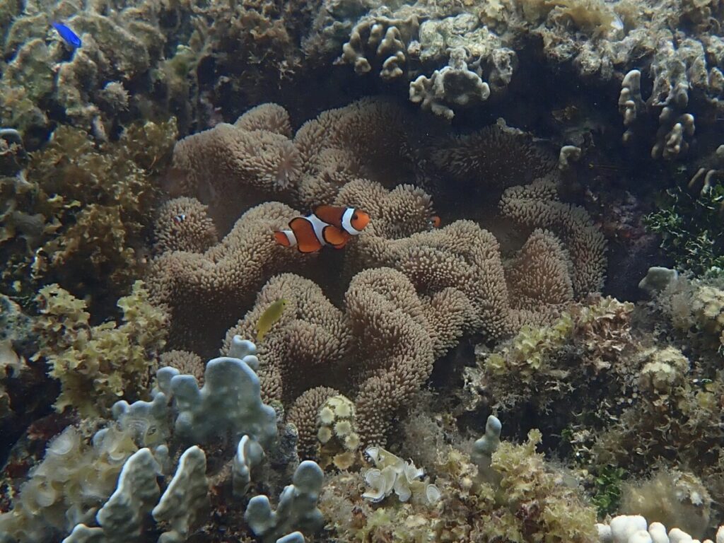 9/8の海 2025年9月8日 | コメントはまだありません 午前の海 10:00 気温 27.0℃ 湿度 85% 水温 29.5℃ サザナミフグ セジロクマノミ 朝から雨が降ったり止んだり日差しはほぼ無し気温低めのツアー中 ツアーご参加ありがとうございました! ツアーご参加ありがとうございました! ツアーご参加ありがとうございました! この天候でも水温は思っていたよりも高め満潮後の海はハマサンゴポイント濁りありアオサンゴポイントまずまずの透明度 アオサンゴ いろんなチョウチョウウオがおよいでました 海水温が高めのため船上での風は冷たく感じ2ミリタッパー着用にてちょうど良い体感でした ツアー終了して事務所に戻ったら日差しサンサンのいつもの石垣島ツアー中の涼しさがウソのようでした 看板犬うめ 未分類