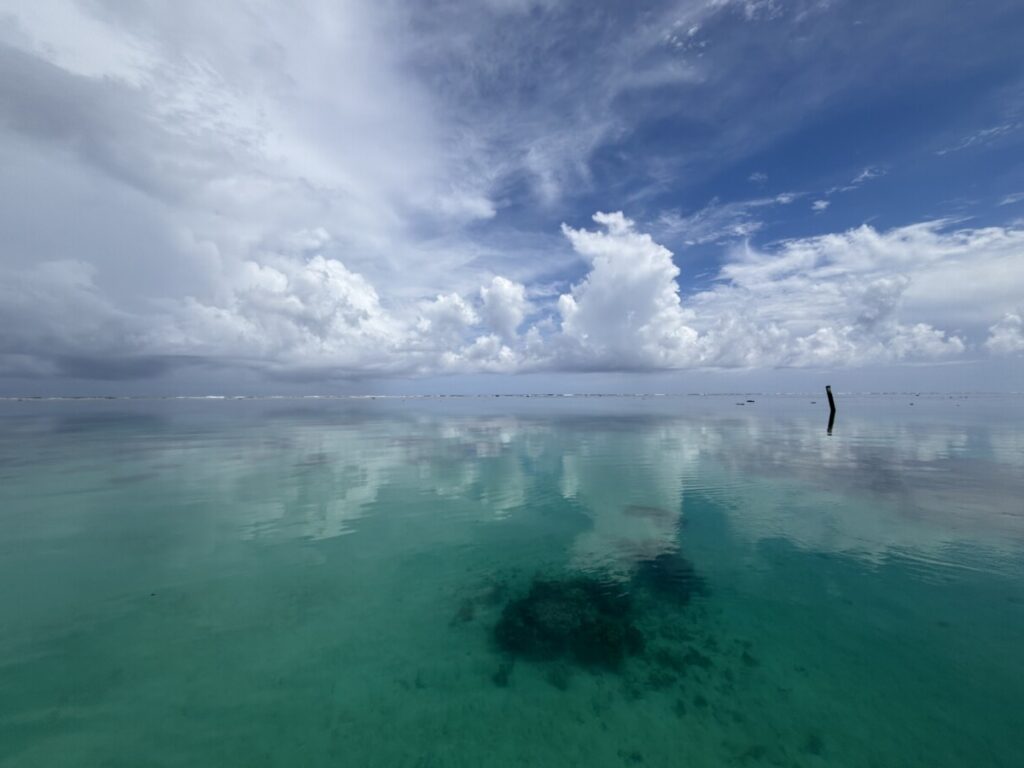 ③午後のツアー開始時にはベタ凪の海と青空