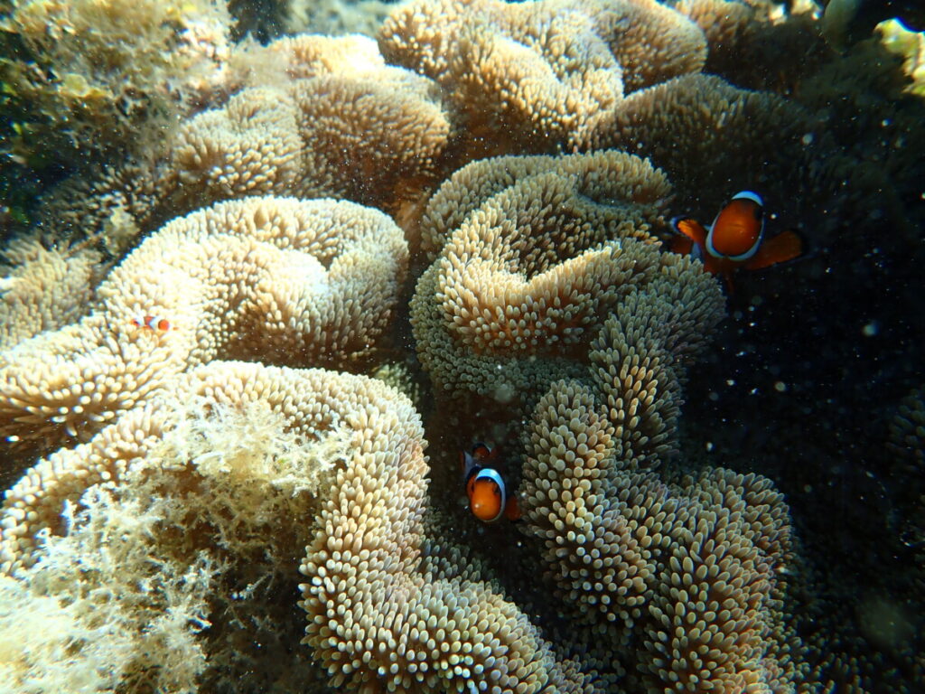 アオサンゴ、ハマサンゴどちらのポイントも透明度よく、
