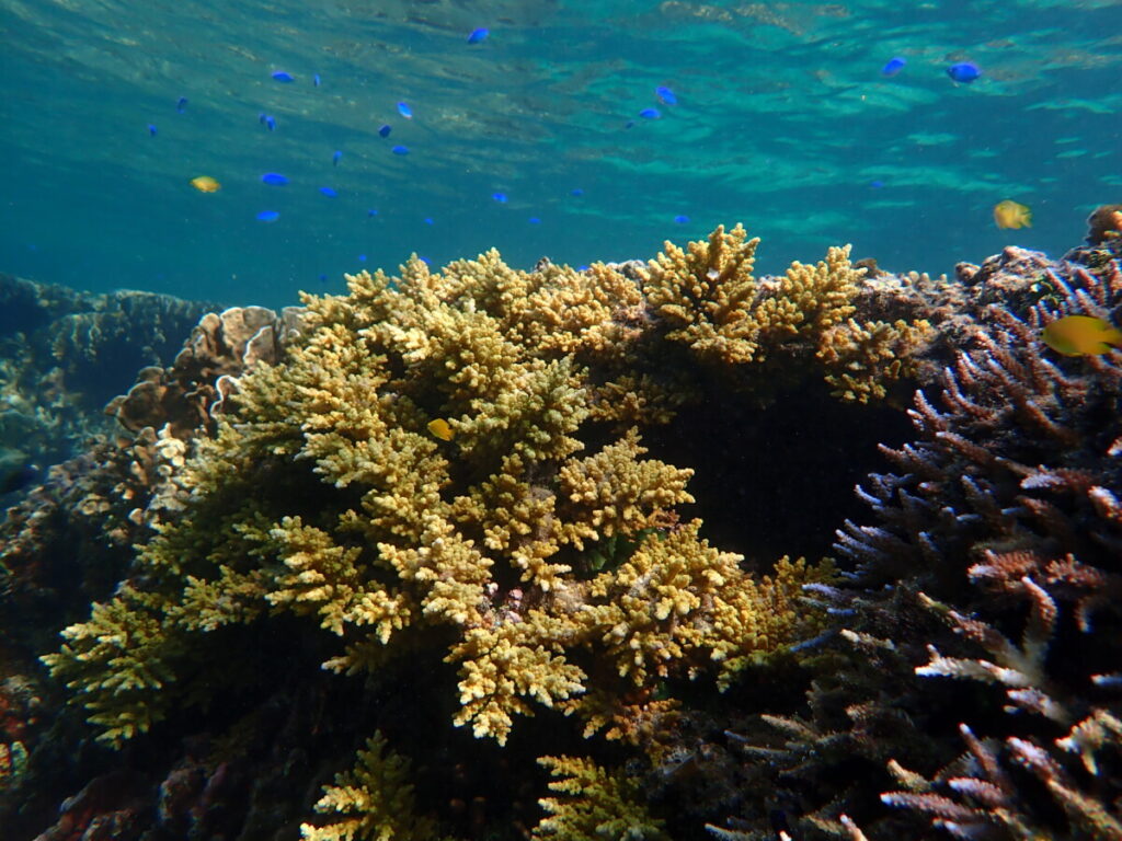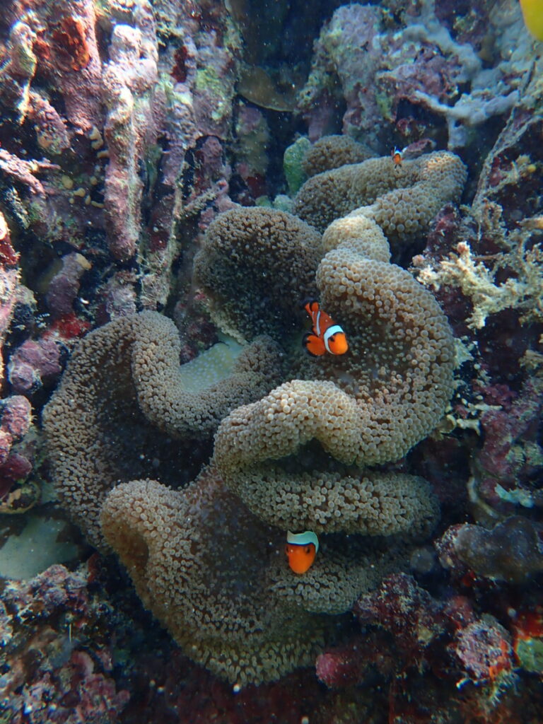 10/13の海 2025年10月14日 | コメントはまだありません 午後の海 15:00 気温 31.8℃ 湿度 68% 水温 31.0℃ ツアーご参加ありがとうございました! ツアーご参加ありがとうございました! 小潮 午後満潮の海干満差の少ない小潮ハマサンゴポイントもアオサンゴポイントも透明度良好 ツアーご参加ありがとうございました! ブーケのようなミドリイシサンゴこのまま折れずに育って欲しい デバスズメダイ カクレクマノミファミリーが縦一列に並んでました 10月中旬にもうすぐなるのに気温も水温もまだまだ高め今年も暑かった夏を白化せずに乗り越えたサンゴたちに影響が出ませんように… うめ看板犬 未分類