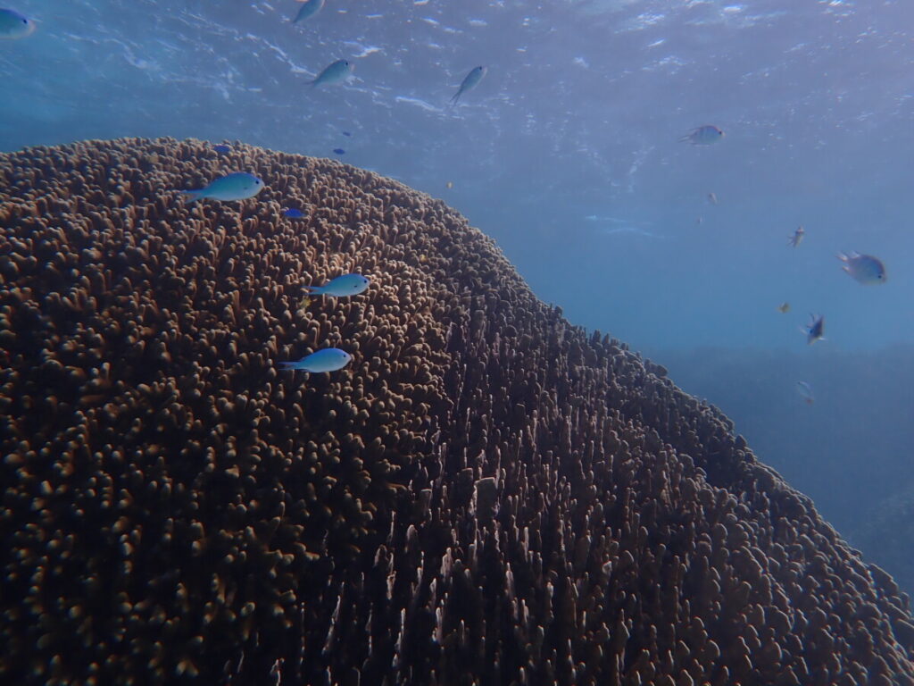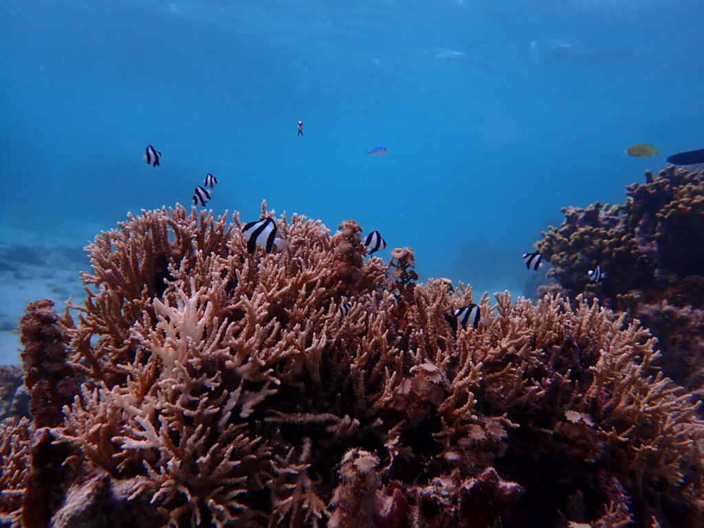 10/31の海 2025年10月31日 | コメントはまだありません 午後の海 15:00 気温 27.8℃ 湿度 66% 水温 28.2℃ 午後のお客様 ミスジリュウキュウスズメダイ いつの間にか空の色は淡くなり日中の気温は30℃以下気温よりも水温が高くなり10月も今日で終わり…石垣島もすっかり秋となりました カガミチョウチョウウオ ツアーご参加ありがとうございました! 今年泳ぎ納めのツアーご参加ありがとうございました! 今日も予報に反して午前は雨降りお昼からは晴れましたが時折予報よりも強めの風が吹いた海でした ユビエダハマサンゴとアオサンゴ 久しぶりに会えたドクウツボサンゴの下から顔出してくれてましたちょっと痩せてる…?長老のウツボさんかな…?なんとなく表情も穏やか アオサンゴ ユビエダハマサンゴとアオサンゴ 明日からも風がおさまったり強くなったり…不安定な海況が続く予報です 看板犬うめ 17歳5ヶ月 未分類