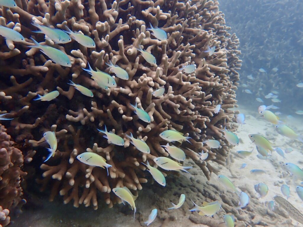 4/1の海 2026年4月1日 | コメントはまだありません ツアー開始時 ツアー終了時 4月最初の今日の海10:00 気温 25.9℃ 湿度 87% 水温 25.5℃ ツアーご参加ありがとうございました! イバラカンザシ ツアーご参加ありがとうございました! 今日も雨予報でしたが雨は降らず曇り空でしたが時々日差しあり ハートの形を見つけるとホンワカする♡ ユビエダハマサンゴとアオサンゴ カクレクマノミ 大潮の海ハマサンゴポイントもアオサンゴポイントも少し濁りがありました ユビエダハマサンゴに埋もれそうなアオサンゴ デバスズメダイ 魚たちは変わらず元気デバスズメダイはくっきりと婚姻色になっていました(全身が黄色っぽくヒレが黒くなる)以前は梅雨ごろから婚姻色となっていたのに… 看板犬うめ 2021年2月後ろ姿もなんとも愛おしい首の皮のたるみが可愛いうめ 未分類