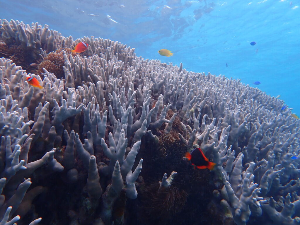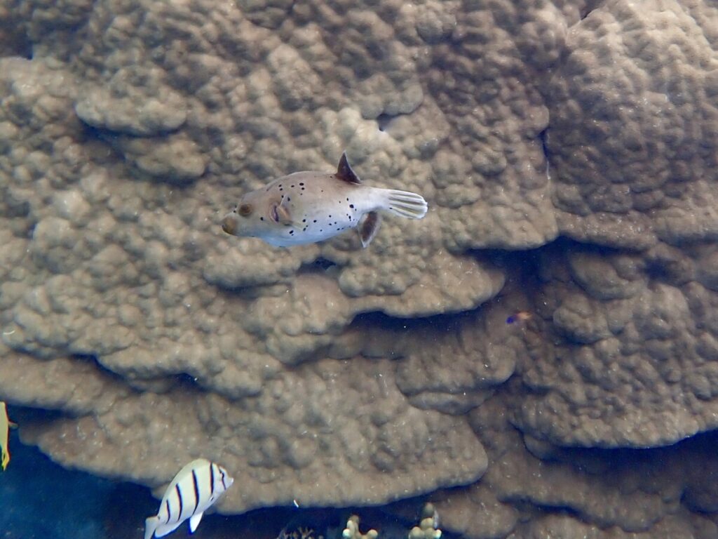 4/5の海 2026年4月5日 | コメントはまだありません 10:00 気温 24.6℃ 湿度 84% 水温 24.8℃ イバラカンザシ ツアーご参加ありがとうございましたれ 昨日は春の嵐風が強くツアー中止しました ツアーご参加ありがとうございました! ハマクマノミ ミスジリュウキュウスズメダイ 海も荒れていたためまだ濁りが残っているかも…と心配でしたが思っていたほどの濁りではなく海を楽しんでいただけました ユビエダハマサンゴ コクテンフグ別の個体それぞれの模様に個性があって可愛いです 看板犬うめ 2021年2月魅力的なヒップでしょ 未分類