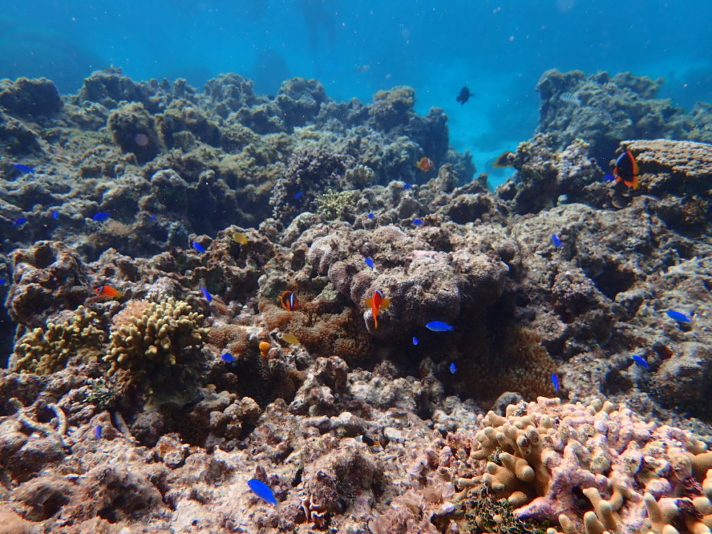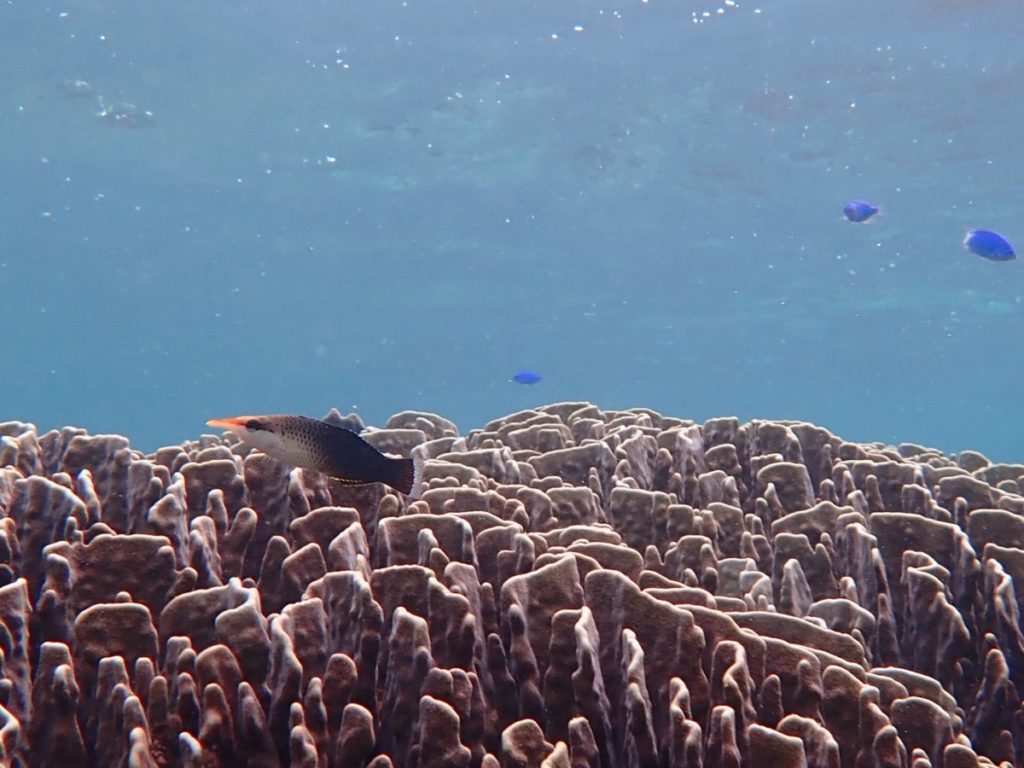風ちょっぴり強め 2019年2月3日 | コメントはまだありません 午後の海 ちょっぴり風強めの石垣島 気温 25.1℃ 湿度 67% 14:00 ハマサンゴ とトノサマダイ デバスズメダイ クマノミ団地 エダサンゴ 南東の風やや強め ポイントによっては 海の中も砂が舞う ハマサンゴ とユビエダハマサンゴ アオサンゴとクギベラ カクレクマノミ 今日もコブシメ居てくれました♪ お客様曰く つがいで居たそうです! 明日は皆さんにも 2匹お見せできるといいなぁ〜 午後のお客様 ハマサンゴ でっかいです! クモガイ見つけたよー♪ 風強めだったので、うめはお留守番犬 *2月〜3月のツアー* 満潮時のみ催行となります スケジュールはホームページにあります ご予約状況にてご確認下さい 冬の海も一緒に楽しみましょう! 未分類